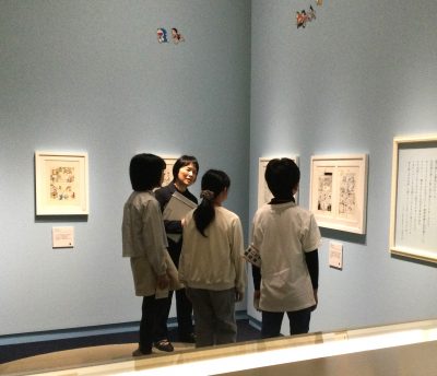 展示原画などの説明を熱心に聞く姿は真剣そのもの!